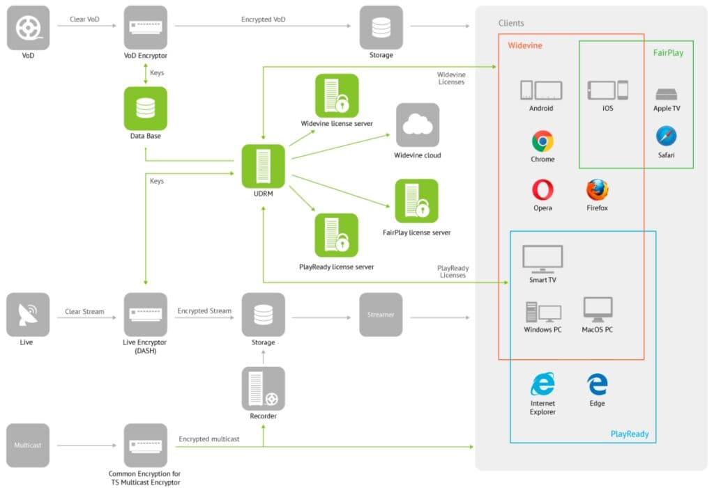 - Compliance with Common Encryption (CENC) standard.