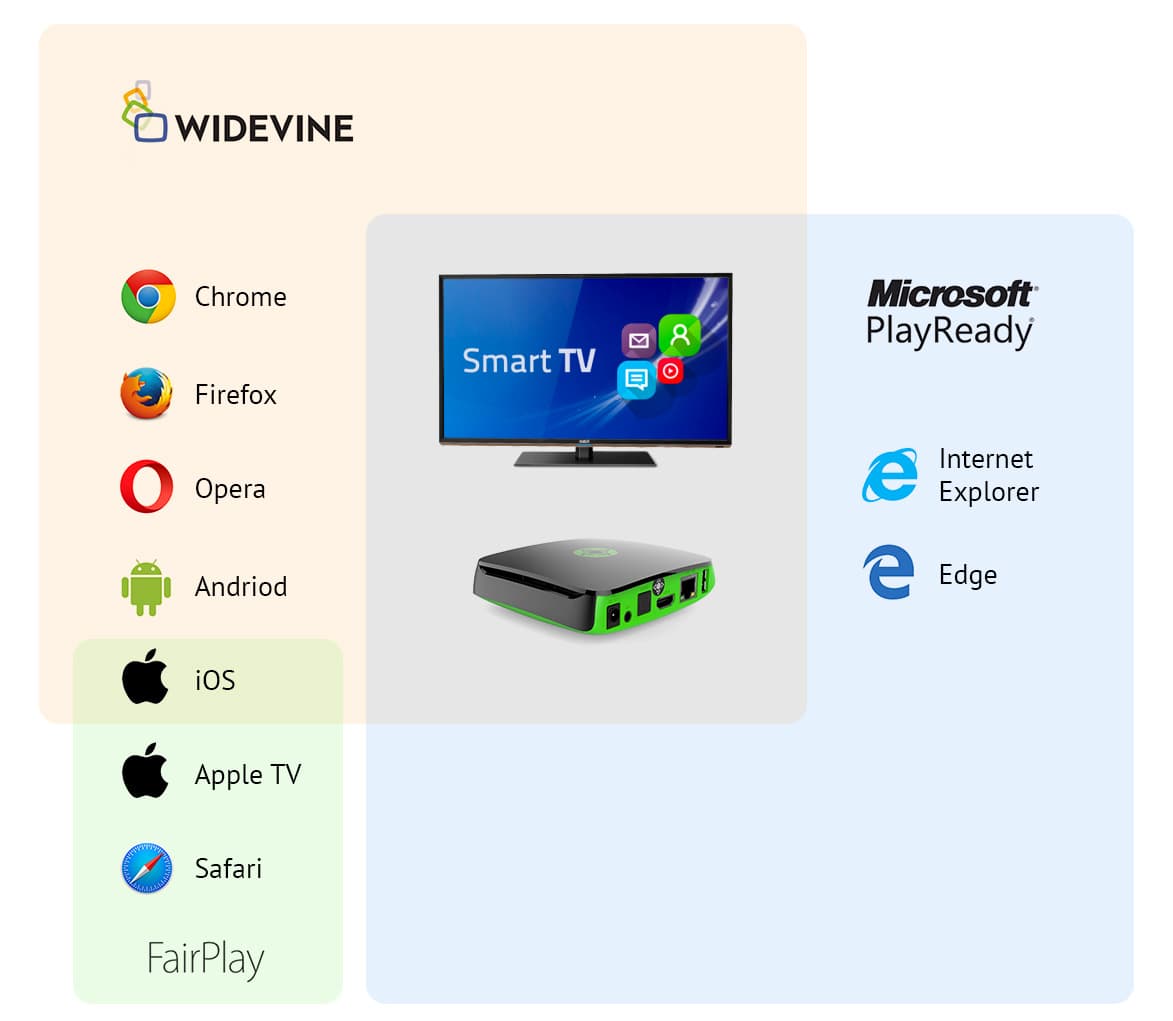 Standard edition of Smartlabs UDRM supports the following DRM systems: